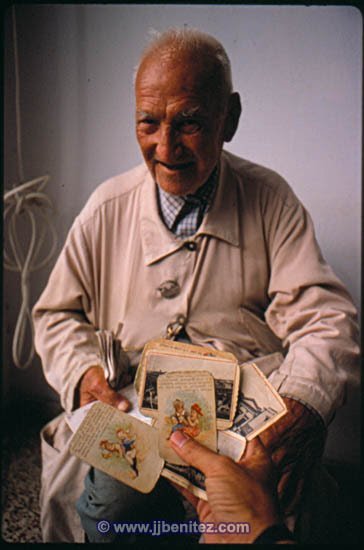 Un día me mostró sus “disturbios”: un calendario de 1875 (no sabía para qué), un duro de plata de Amadeo I (tampoco sabía muy bien para qué), veinte salvoconductos (por si estallaba de nuevo una guerra), algunas ideas que nunca utilizaba, un sol en Géminis (que tampoco entendía, pero era muy bonito) y varias postales de Buenos Aires, donde jamás estuvo y por las que paseaba cuando se aburría de Algodonales.