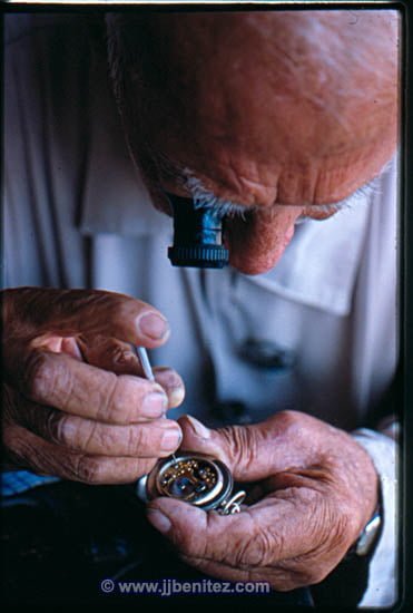 Eso hacía Faustino Almansa (ahora repara los relojes sin tiempo del más allá) cuando lo conocí en el pueblo gaditano de Algodonales (España).