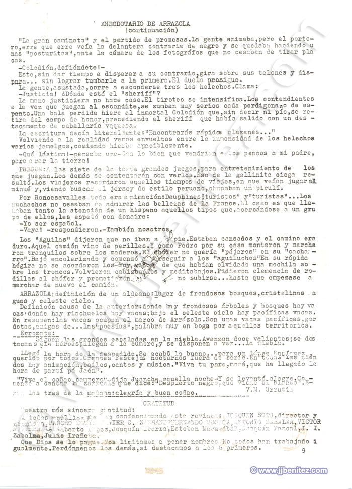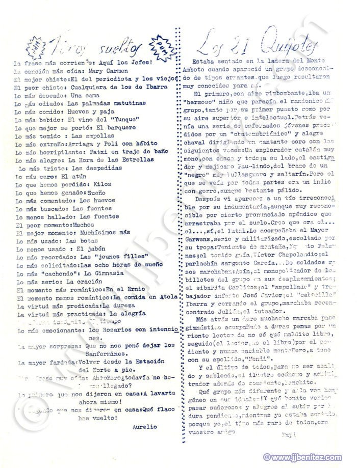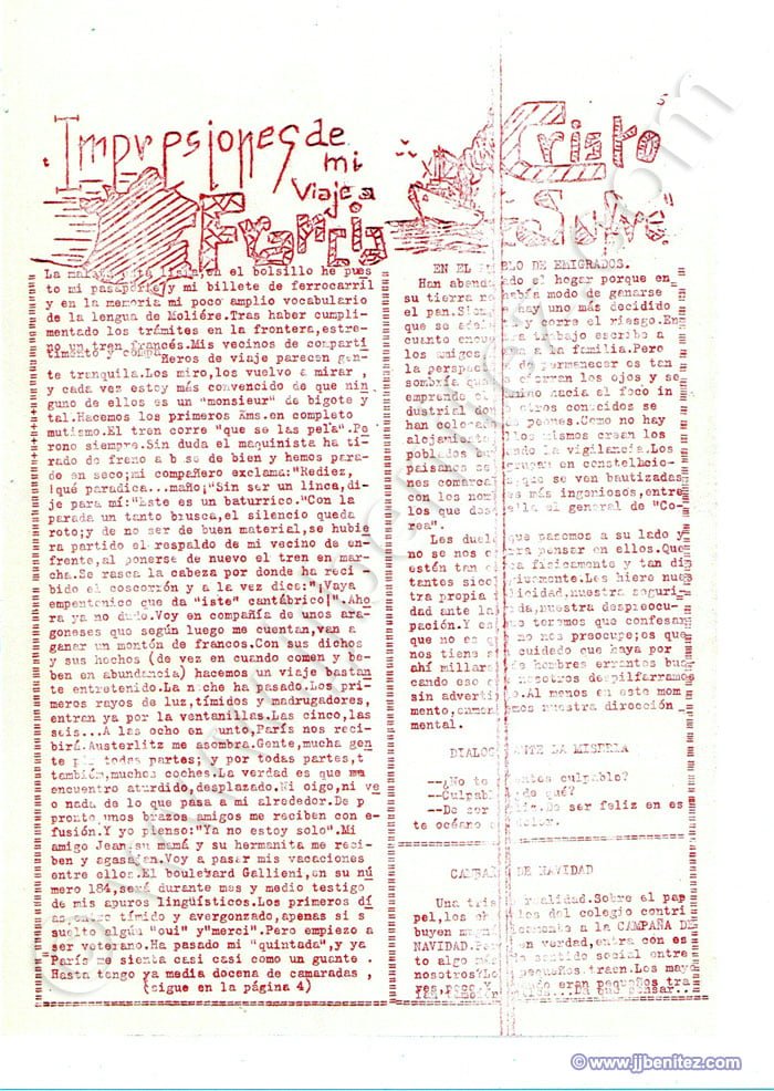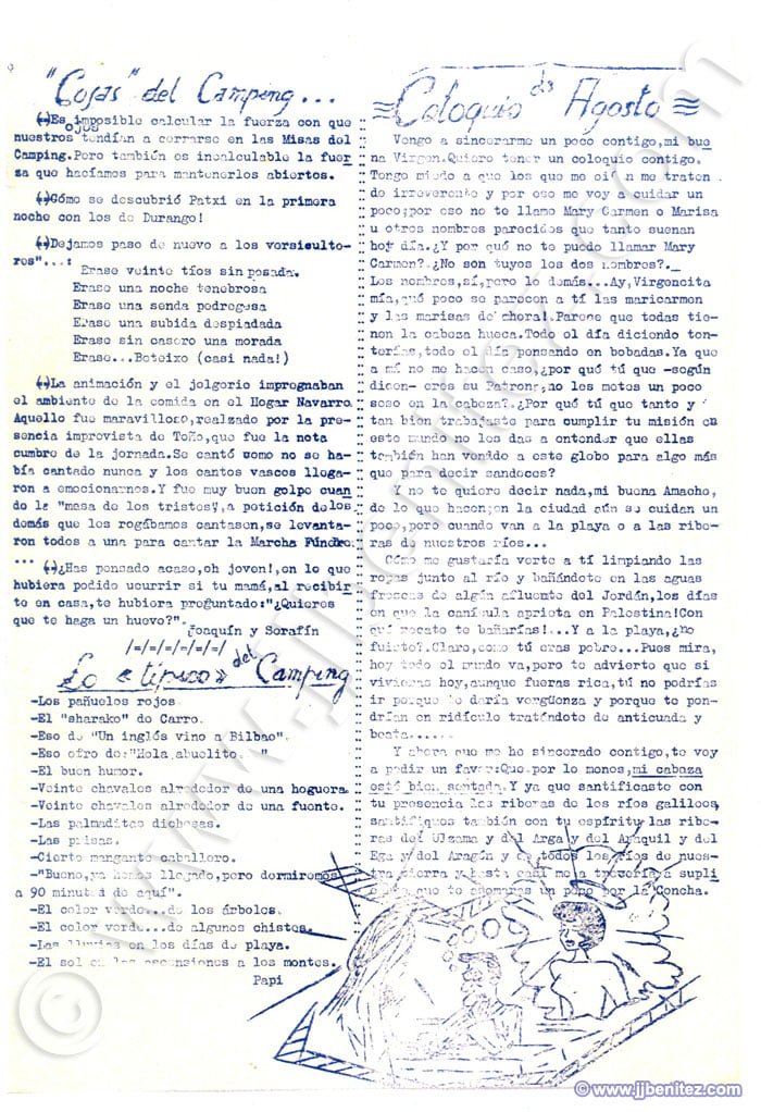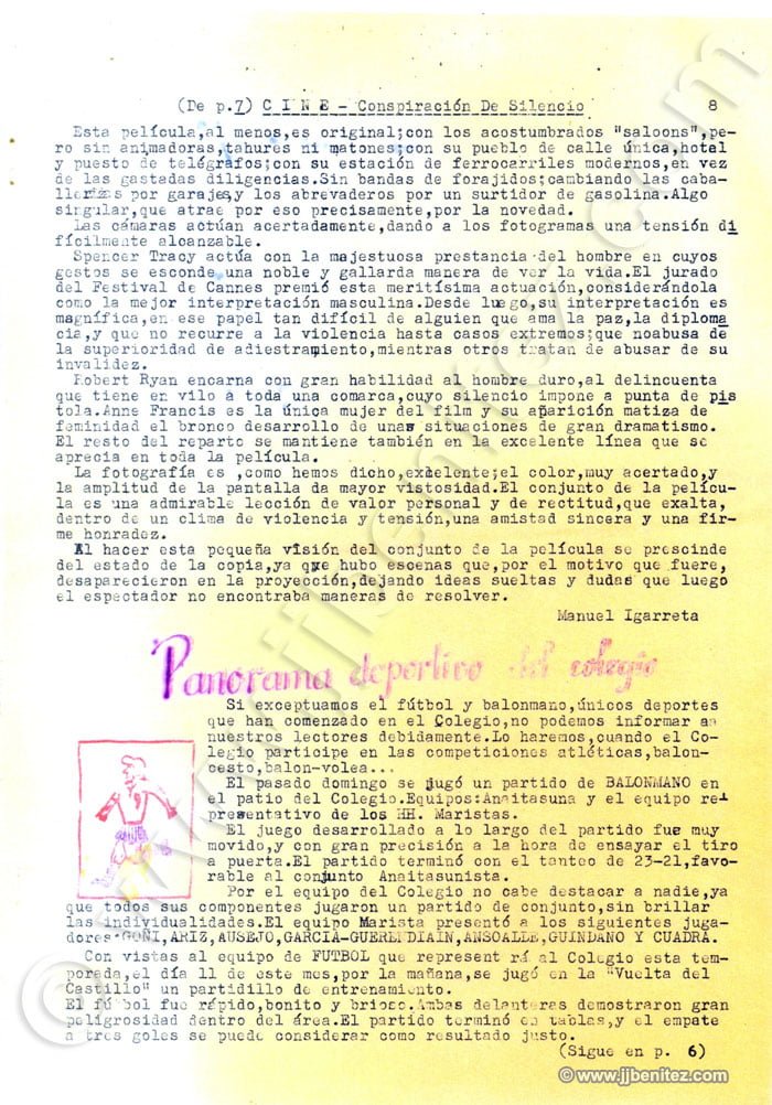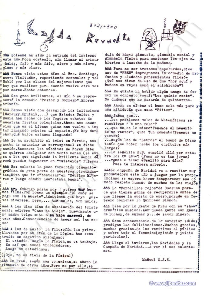 Siento no disponer de fotografías de todos ellos. Éramos veinte o treinta pero, como casi siempre, sólo trabajaban cuatro. Fueron mis primeros compañeros de redacción en un periódico. Oficialmente empecé a trabajar como periodista en “La Verdad” de Murcia (España), pero no es cierto del todo. Mi primer periódico fue “Remo”, un boletín que se editaba en el colegio de los Hermanos Maristas, en Pamplona (España). Corrían los años cincuenta. “Remo”, en ocasiones, era mensual. Otras veces era trimestral. Ocurrió, incluso, que fue censurado. Allí escribían, dibujaban e imprimían o barrían la redacción Pancho, Colodión, Muruzabal, Joaquín Soto, Victor Urrutia, Serafín Carro, Pascal, Manolo Igarreta, Aurelio, Joaquín Ibarra, Paulino Irujo, Patxi Loidi, José Luís López y Joaquín Izco, entre otros. Éramos románticos, idealistas y católicos, apostólicos y romanos. Más o menos como ahora….