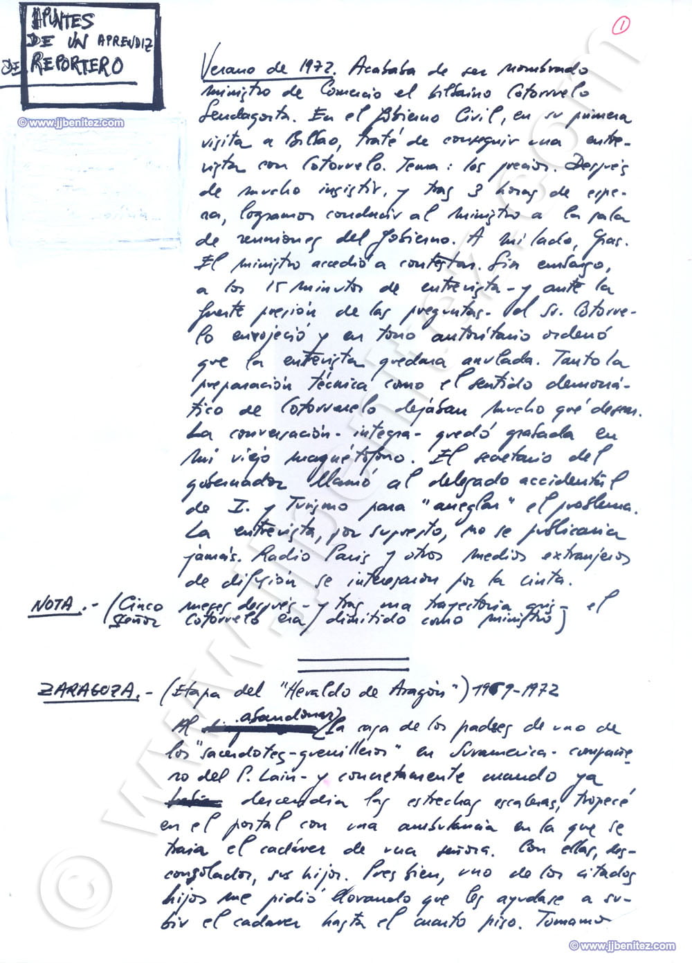 Recién llegado a La Gaceta del Norte, en Bilbao (España), Juanjo Benítez (26 años) inicia un diario en el que escribe sus experiencias como reportero de Prensa.